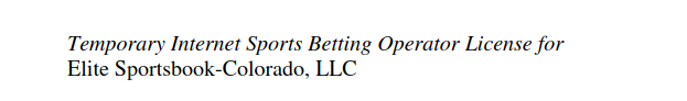 In the agenda for the July 16 meeting of the Colorado Limited Gaming Control Commission you’ll notice that a company called Elite Sportsbook–Colorado LLC is applying for a Temporary Sports Betting Operator License and a Temporary Internet Sports Betting Operator License. These are issued to allow companies to get their Colorado plans in motion for retail and mobile betting respectively while their final licensing is being processed.