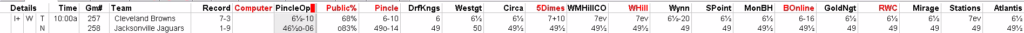 Cleveland is a 6.5 or 7 point favorite at Jacksonville with the total at 49 or 49.5: