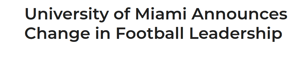 The University is committed to providing its student-athletes with the best opportunities to succeed and to building championship-caliber teams at the U. An announcement regarding new leadership for the football program will be forthcoming.