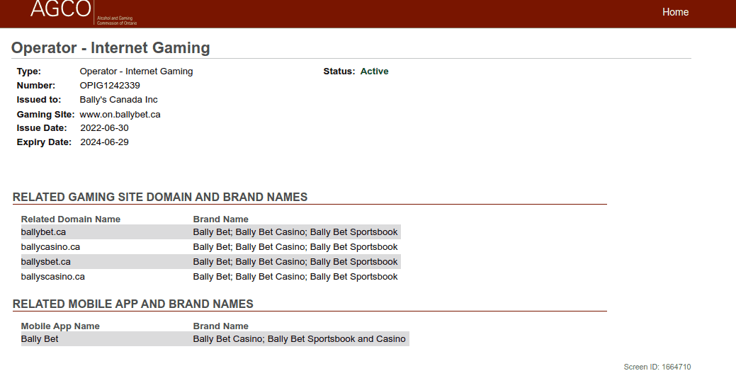 - Bally’s has received an operators license in Ontario for sports betting and casino gaming indicating that a launch in Canada’s largest province is forthcoming.