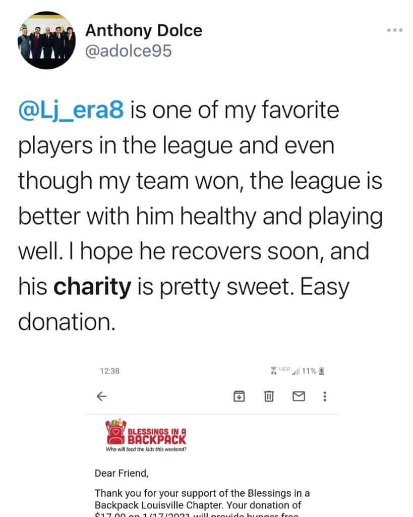 As of Saturday night, the charity had received over 2,500 individual donations totaling over $75,000. Since the story gained considerable traction on Sunday there’s every reason to think that the final tally of Bills Mafia donations could be considerably more than that. Here’s one of the Tweets that started the donations expressing a ridiculously classy sentiment: