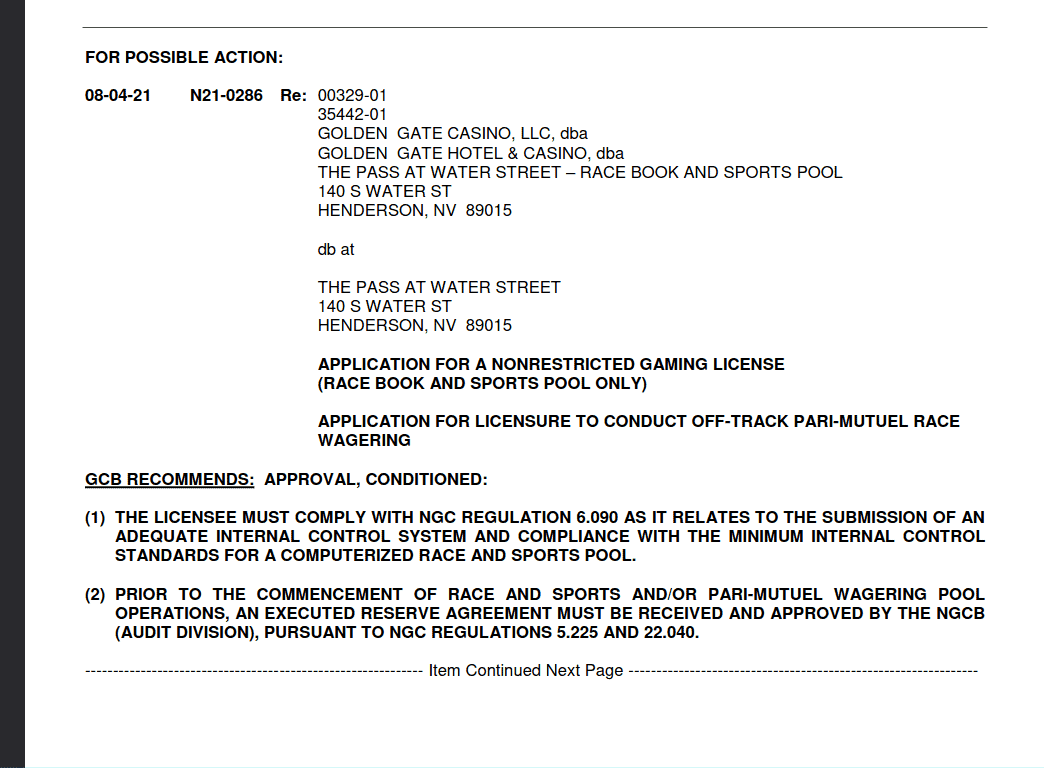 - The Nevada Gaming Comission approved the arrangement at their April 22 meeting.
