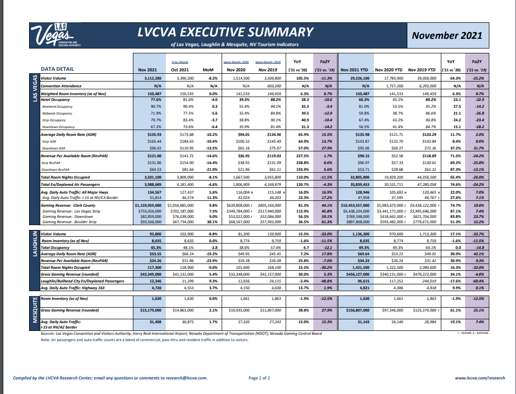 The retail gaming business in Mississippi should at least remain stable going forward. The Gulf Coast has beautiful beaches and all of the recreation activities associated with them. It doesn’t help that the area’s primary tourism organization–the Coastal Mississippi Tourism Commission–is dysfunctional and on the verge of collapse. That said, much about the Gulf Coast promotes itself. Beautiful beaches aren’t a tough sell. The Mississippi tourism industry was actually one of the best performing during the COVID ravaged year of 2020 with the Gulf Coast accounting for a third of that total. One problem with the promotional agencies responsible for the Mississippi Gulf Coast is that it’s hard to get a straight number out of them about how many tourists traveled to the area. I dug through their archives for awhile to no avail. The best number I could find was 13.5 million ‘person trips’ in 2017. No clue how this relates to the quoted 2016 number of 6.2 million but what is clear is that the 43% of the 13.5 million ‘person trips’ that were overnight trips generated $1.17 billion USD in spending. I finally found a figure of 14.2 million visitors for 2019 in a random newspaper article. The fact that there’s little continuity in metrics from year to year doesn’t speak well to the competence of the Coastal Mississippi Tourism Commission. Compare that with the well designed and crystal clear ‘Executive Summary’ that the Las Vegas Convention and Visitors Authority releases every month: