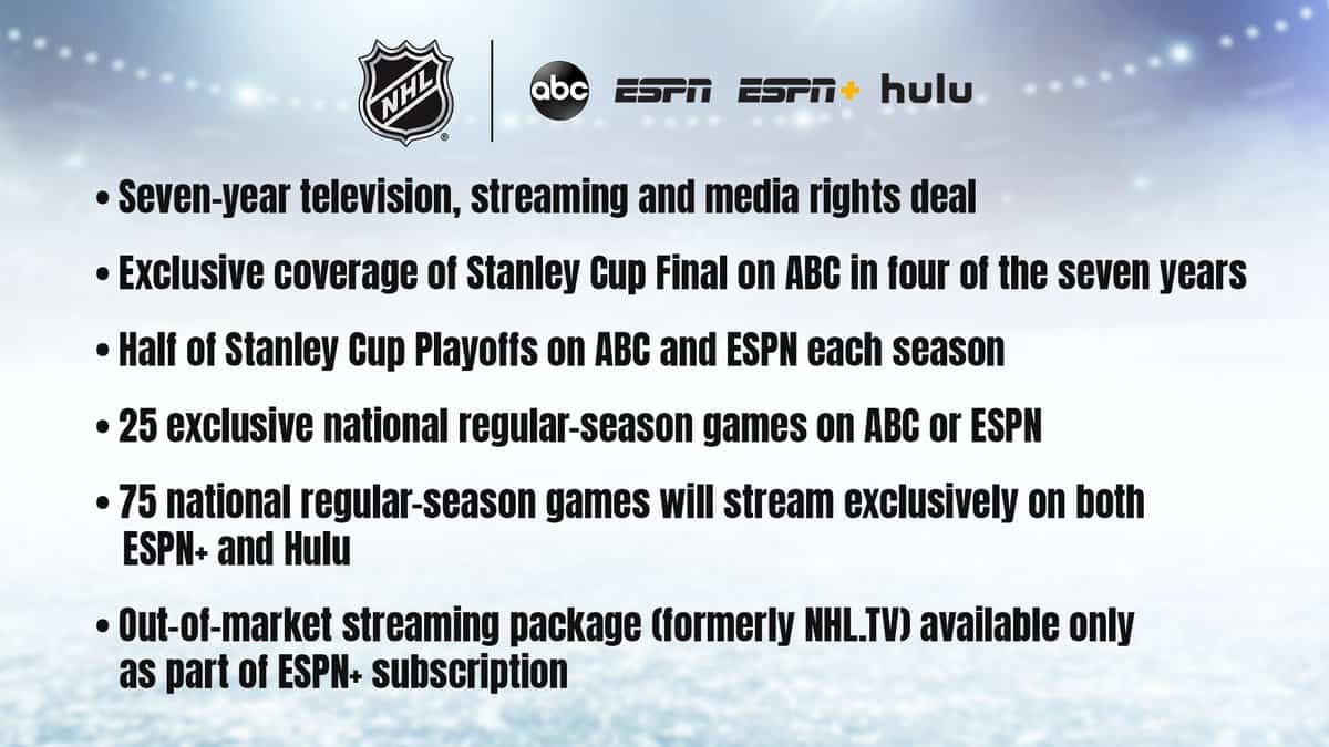 - The Walt Disney Company will pay the National Hockey League (NHL) $350 million USD to buy the league’s 10% stake in Disney Streaming Services.