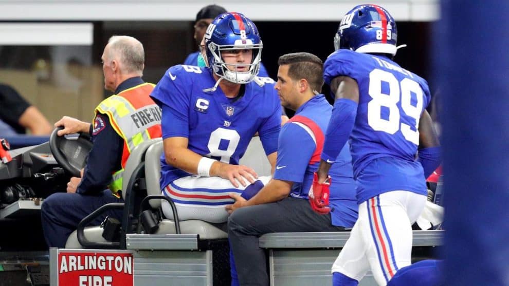 Injuries are part of life in the National Football League and every team has to deal with them. Just not all at once. That’s the situation that the New York Giants are in after a disastrous day for their offense. Three key contributors left Sunday’s 44-20 loss to the Dallas Cowboys: quarterback Daniel Jones, wide receiver Kenny Golladay and running back Saquon Barkley. The timeline for their return is still up in the air.