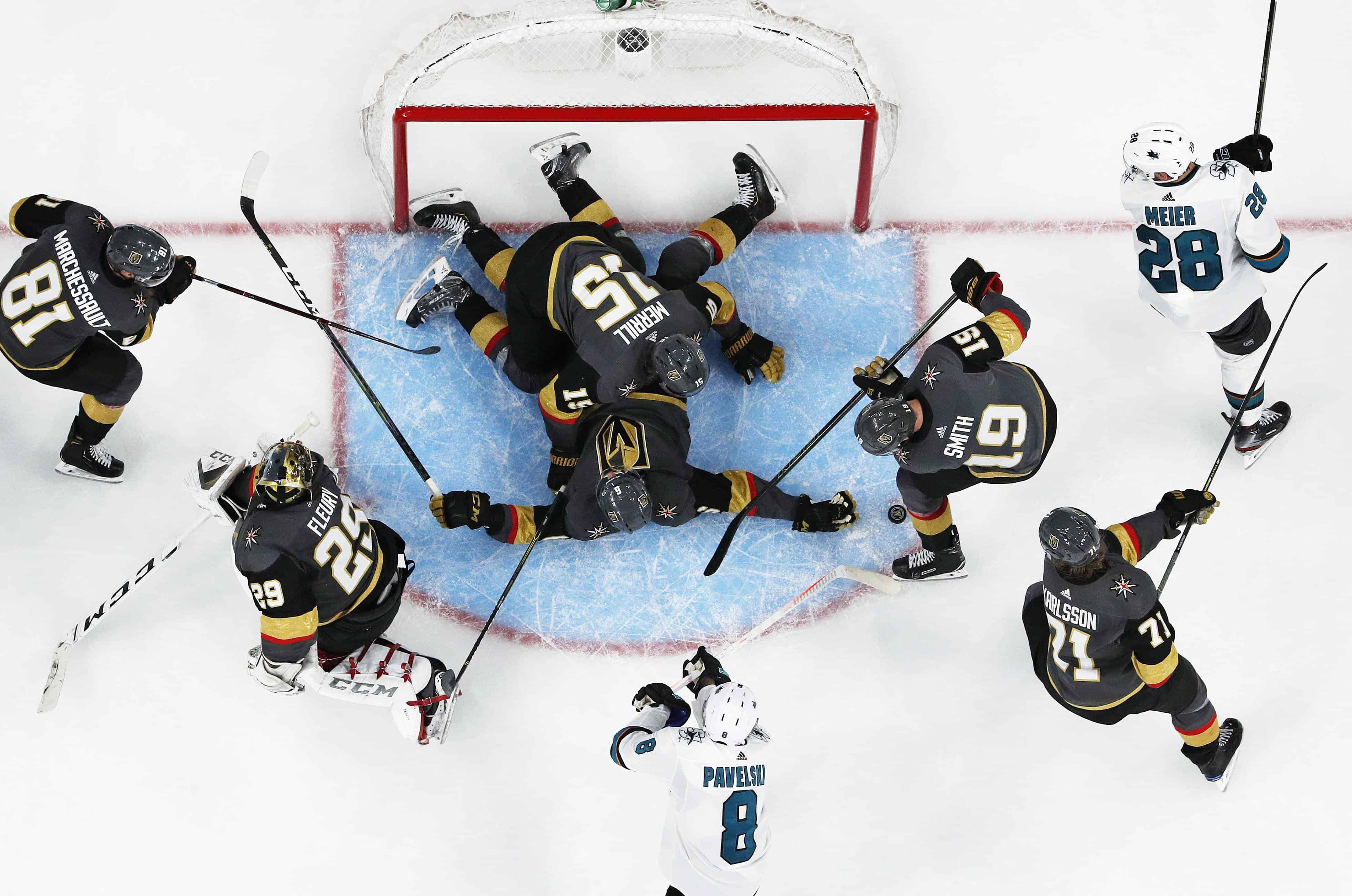 Although it was Tomas Hertl who scored the game winning goal midway through the second overtime–the first shorthanded game winner in a second overtime in NHL history–Sharks’ goaltender Martin Jones gave him the opportunity. Jones had a stellar night limiting Vegas to one goal despite facing 59 shots in just over 90 minutes of hockey. To employ an overused sports metaphor Jones ‘carried his team on his back’ as the statistics underscore the fact that Vegas completely outplayed the Sharks despite the loss. Vegas limited the Sharks to 29 shots on goal making it a +30 shot advantage for the game. The Knights won 57 faceoffs to 44 for San Jose. Most lopsided of all was the ‘hots’ stat which went in favor of the Golden Knights 80-39. Of course, outplaying your opponent or ‘winning the statistical battle’ means very little if the other team wins the game.