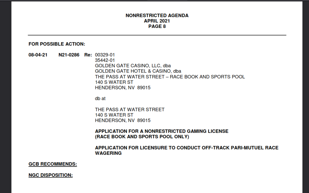 There’s every reason to think that the Gaming Control Board will recommend approval. That would then leave it to the Nevada Gaming Commission to give the final decision and that would most likely happen at the April 22, 2021 meeting in Carson City.
